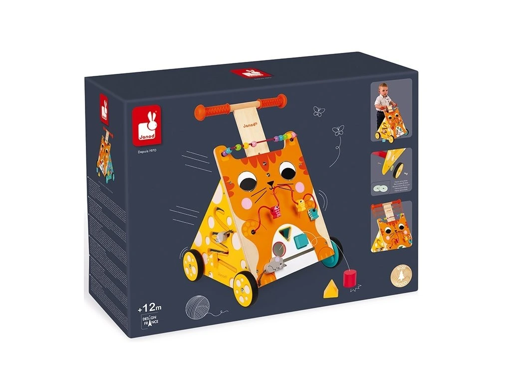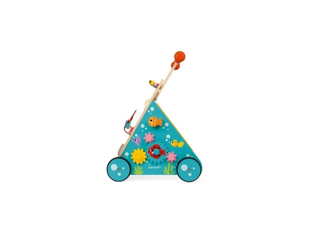 Okrem podpory chodenia môže Vaše dieťa vďaka tejto hračke rozvíjať aj svoje jemné motorické zručnosti a obratnosť so zábavnými aktivitami, ktoré sú súčasťou chodítka - slučkovací hlavolam s rybkami, triedenie a vkladanie tvarov, jazdenie myškou, ozubené kolieska, tlačidlo so zvukom, otočné oči a textilné líčka.