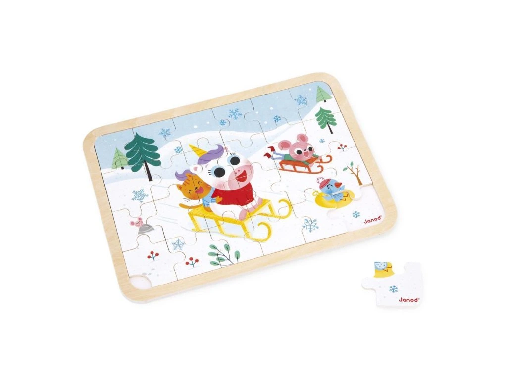 Janod Drevené puzzle s predlohou a hľadanie rozdielov Sánkovačka