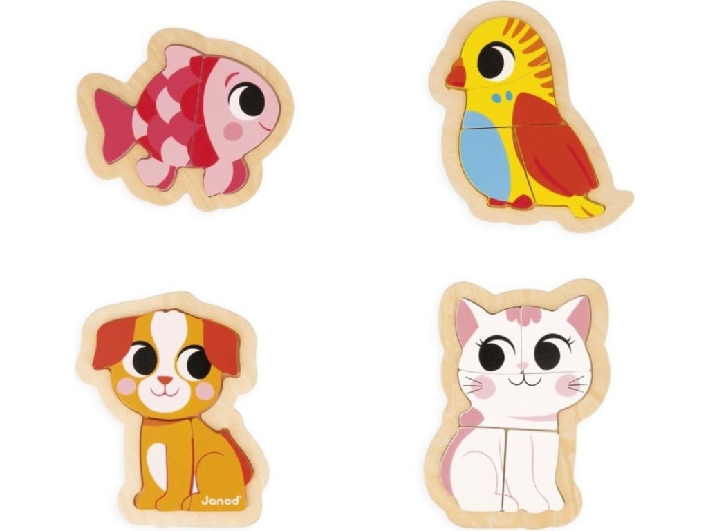 Janod Drevené vkladacie puzzle pre deti Domáci miláčikovia 4v1