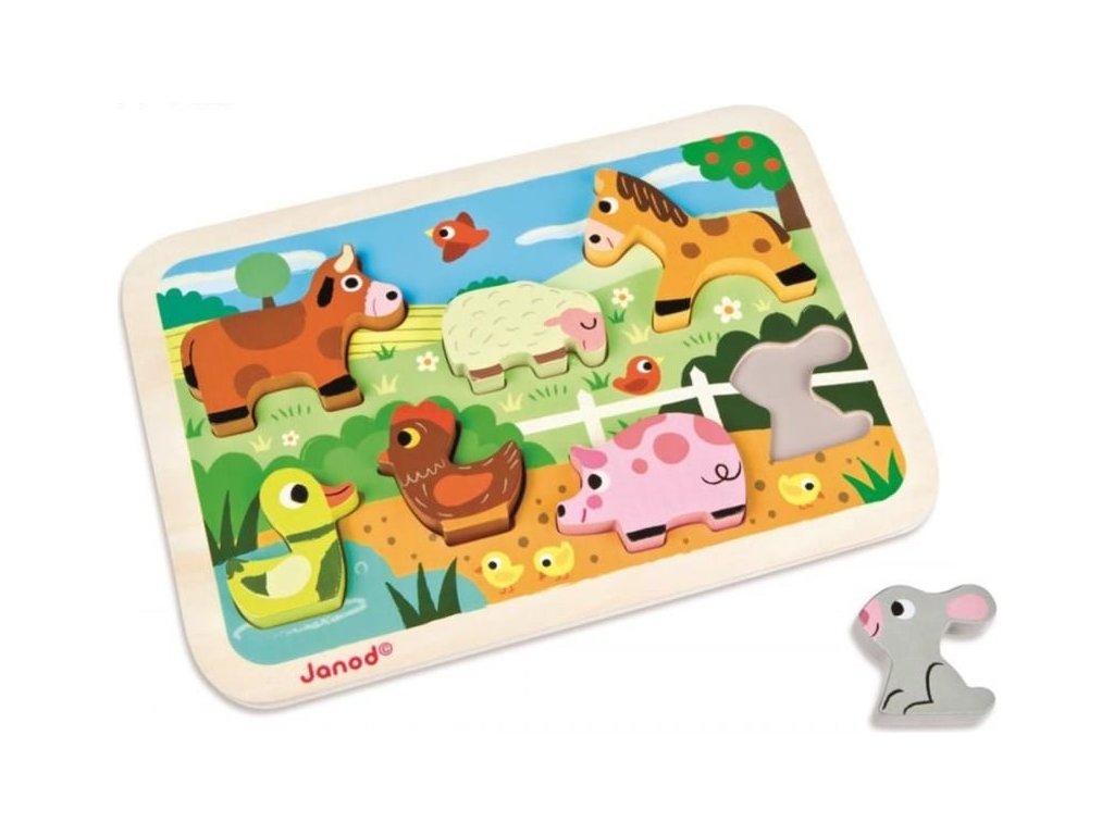 Janod Drevené vkladacie puzzle pre najmenších Farma Chunky