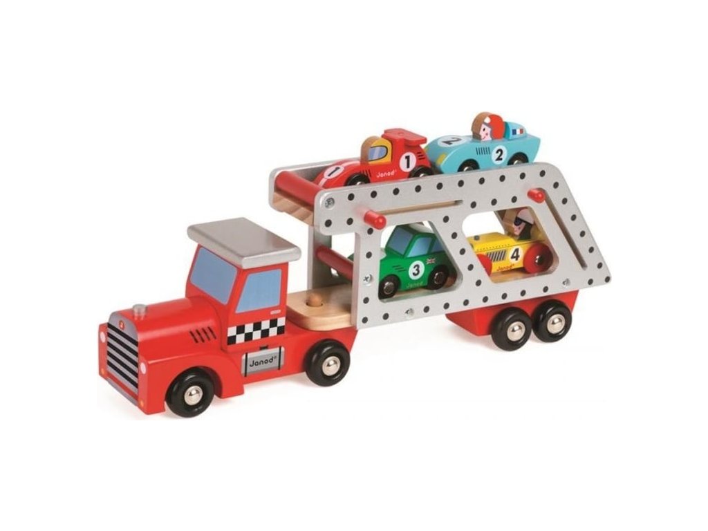 Janod drevené vyklápacie auto Story Car Transporter Janod so 4 autami
