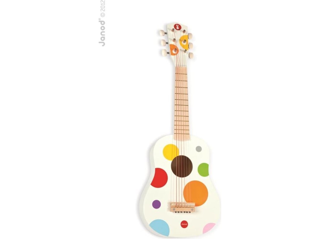 Janod Drevený hudobný nástroj prvá gitara pre deti Confetti s reálnym zvukom 6 strún