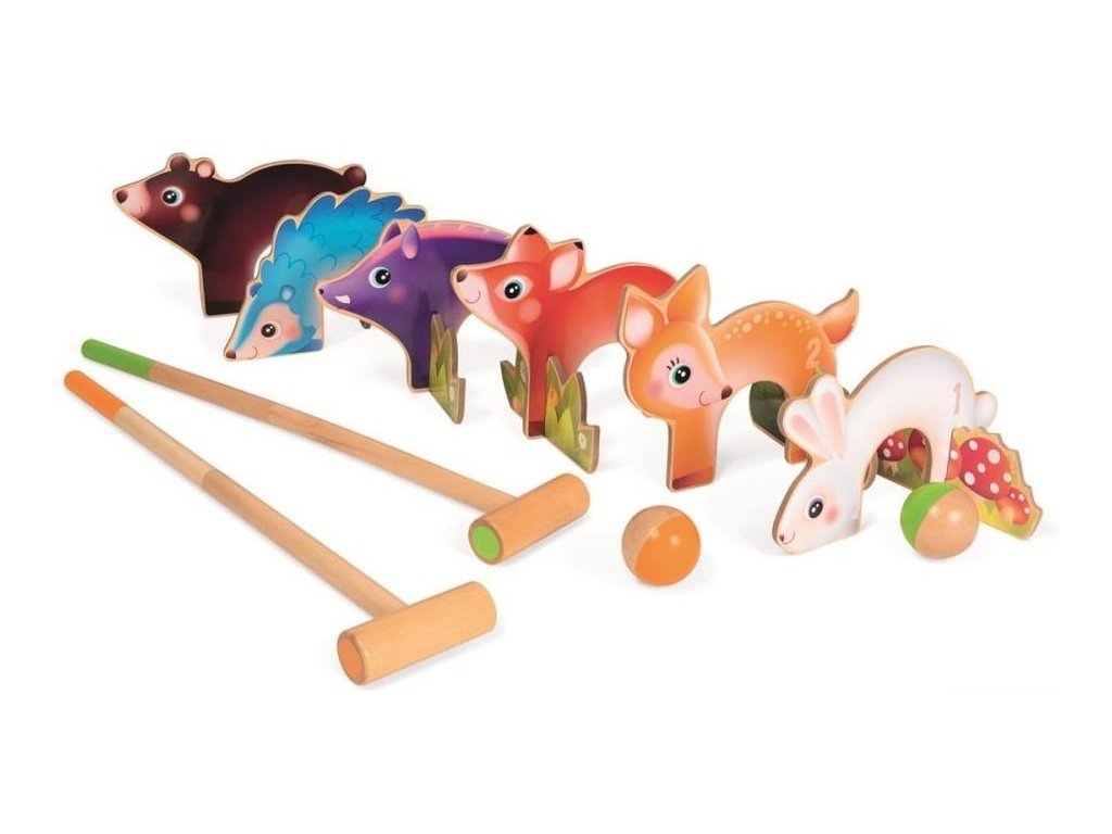 Janod Drevený kriket pre deti Forest Animal Croquet so 6 lesnými zvieratkami