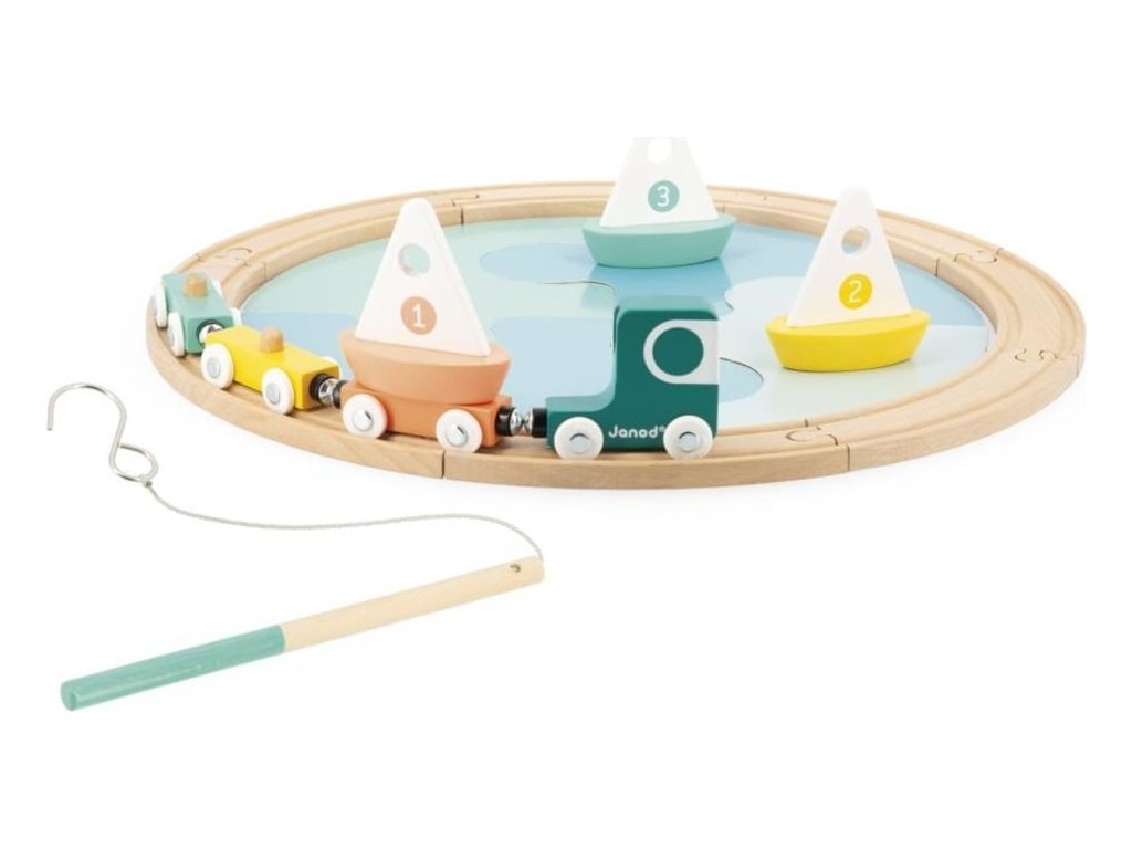 Janod Drevený magnetický vláčik s chytaním plachetníc Bolid