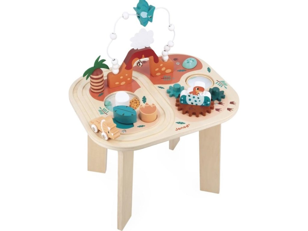 Janod Drevený motorický stolík Dinosaurus s aktivitami Dino