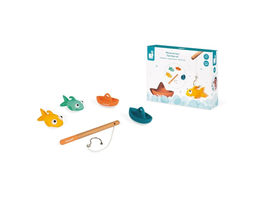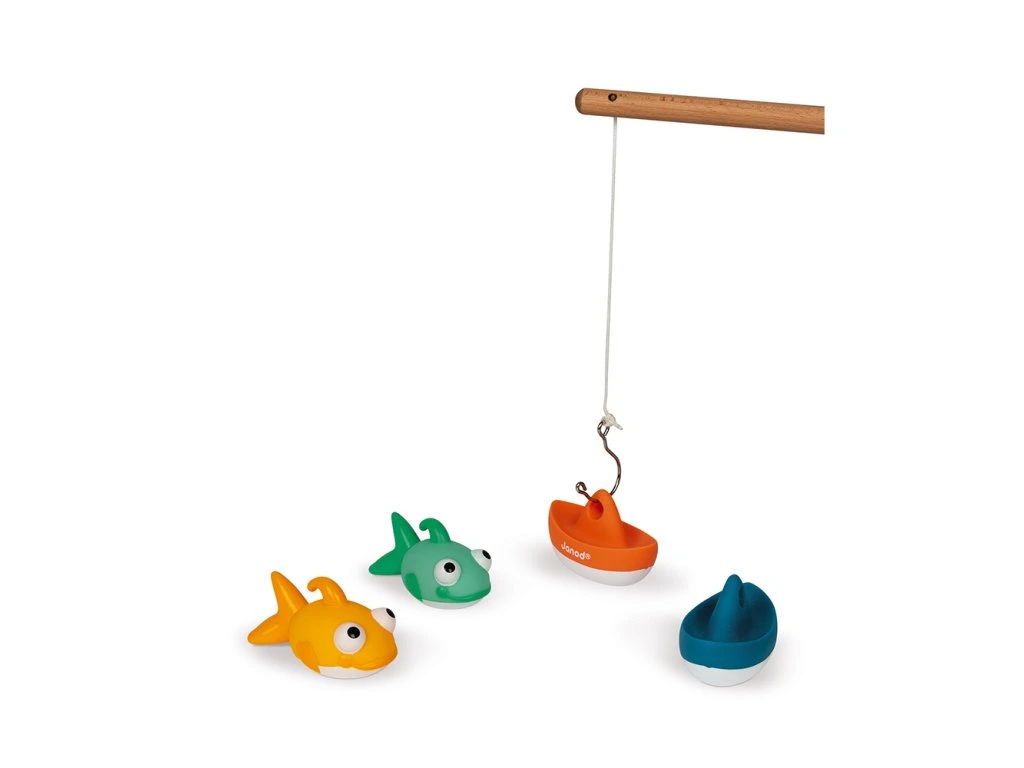 Hračka do vody drevená rybárska udica pre deti s loďkami a rybami Janod séria Bath ToysKomu sa podarí chytiť viac rybičiek alebo lodiek na drevenú udičku? Chyť si ma! je skvelá a zábavná hra, ktorá deťom spestrí kúpanie, či už vo vani alebo v bazéniku.