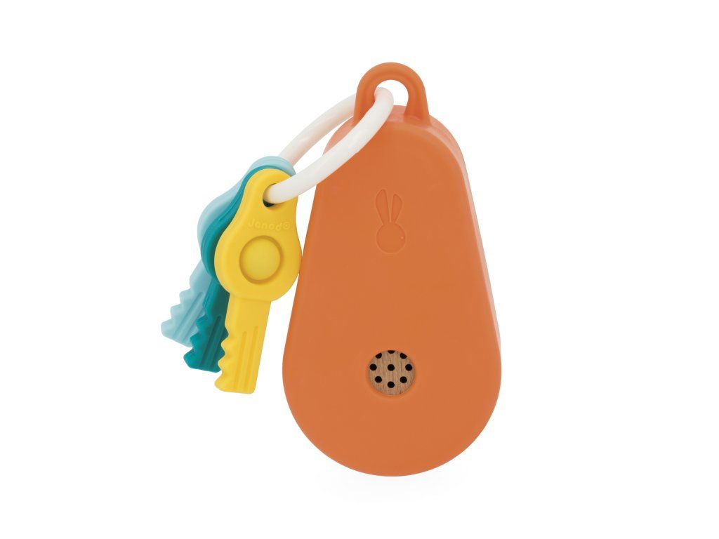 Každé dieťatko sníva o vlastnej kľúčenke! Táto je vyrobená práve pre neho. Vďaka silikónovému puzdru sa ľahko drží a má 4 tlačidlá s realistickými zvukmi: odomykanie, klaksón, výstražné svetlá a štartovanie motora. 3 silikónové kľúče s funkciou vyskakovania stimulujú jemnú motoriku, senzorický vývoj a koordináciu ruka-oko. Drevená hračka FSC pre rané vzdelávanie, vhodná od 18 mesiacov. Napájaná 3 batériami LR44-1,5V (súčasťou balenia).