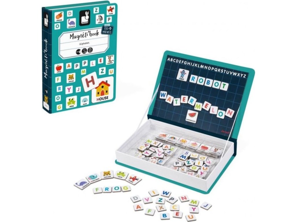 Skladá sa z 26 obrázkových magnetov a 104 písmenových magnetov.