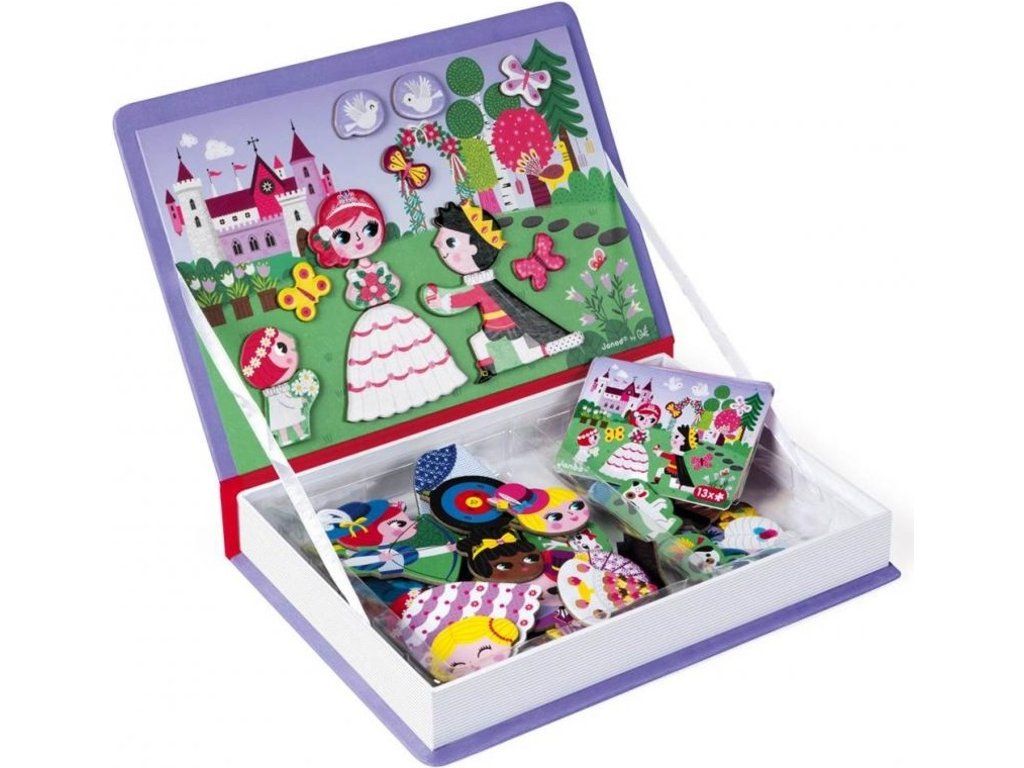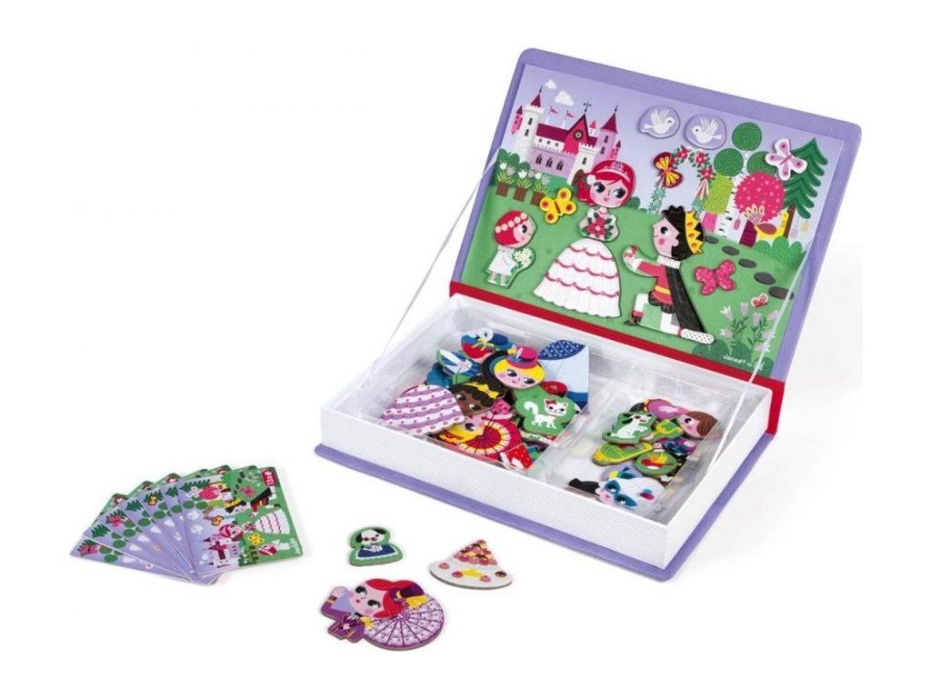 Magnetická vzdelávacia hra v kartóne na tému princeznej. Skladá sa z 55 magnetov a 7 kariet. Akonáhle je kniha otvorená, cieľom je urobiť na tabuli rovnakú scénu, ako je vyznačená na karte vďaka magnetom. Janod magnetická kniha Magneti'Book Princesses je krásna hračka vhodná pre deti od 3 do 8 rokov.