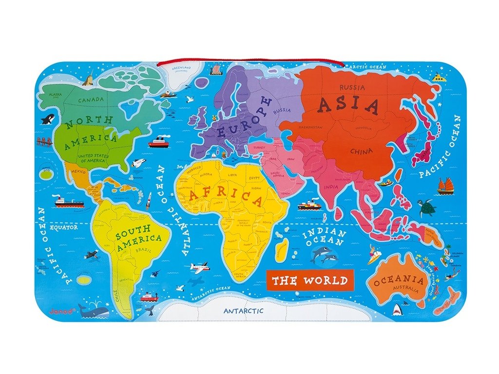 Janod Magnetická mapa sveta skladačka s tabuľou na zavesenie