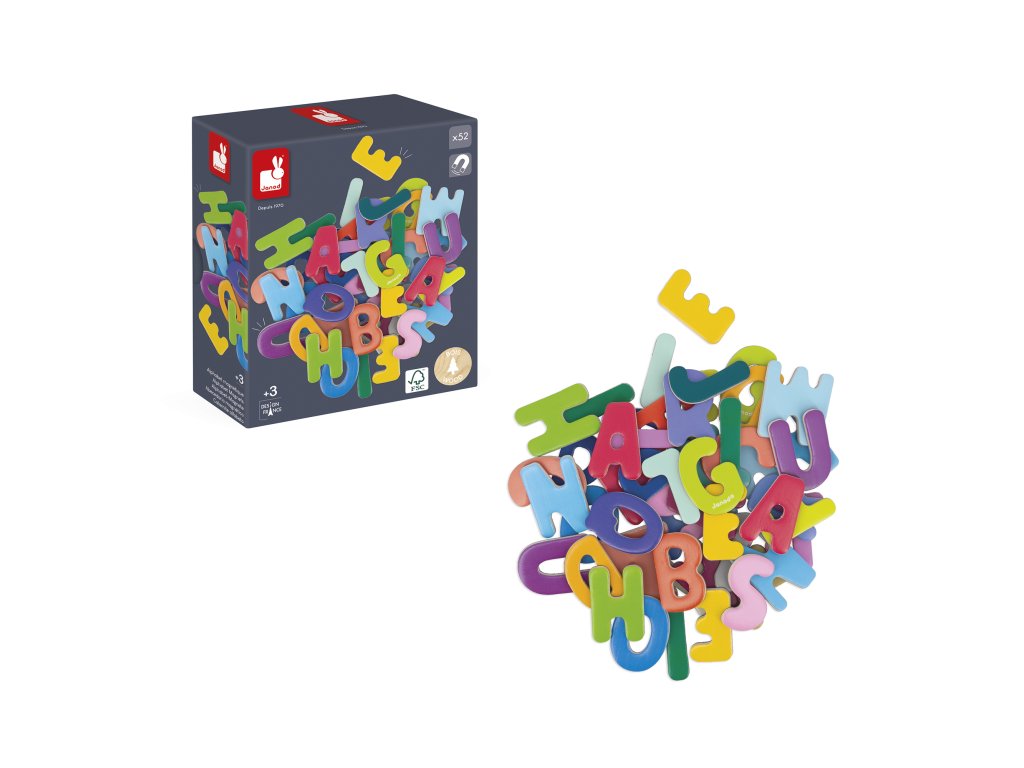 Zabavte sa pri objavovaní abecedy s Janodom! Táto sada obsahuje 52 magnetických drevených písmen, ktoré sa dajú umiestniť na magnetické tabule alebo akýkoľvek iný magnetický povrch. Vaše dieťa sa môže pri zábave naučiť čítať a písať abecedu. Magnetická hračka vyrobená z dreva FSCTM pre deti od 3 rokov.