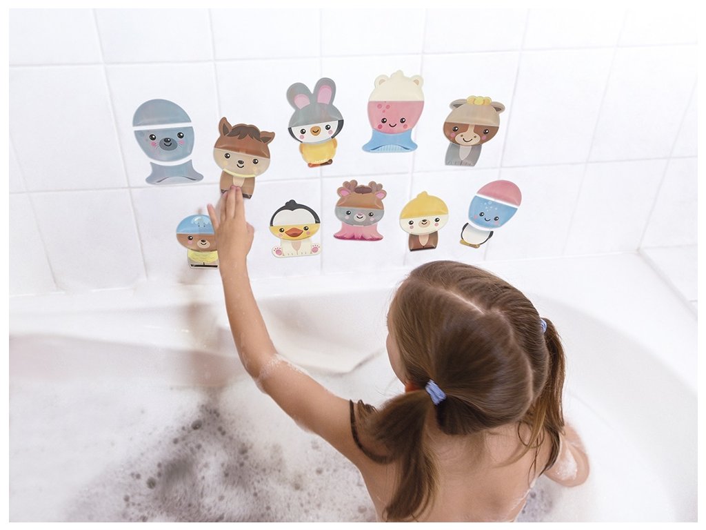 Puzzle s motívom roztomilých zvieratiek (10 zvieratiek) si môžete poskladať vo vani, na obklade v kúpeľni ale aj na suchu v detskej izbe.