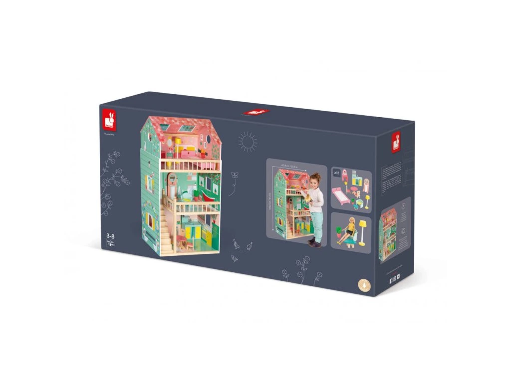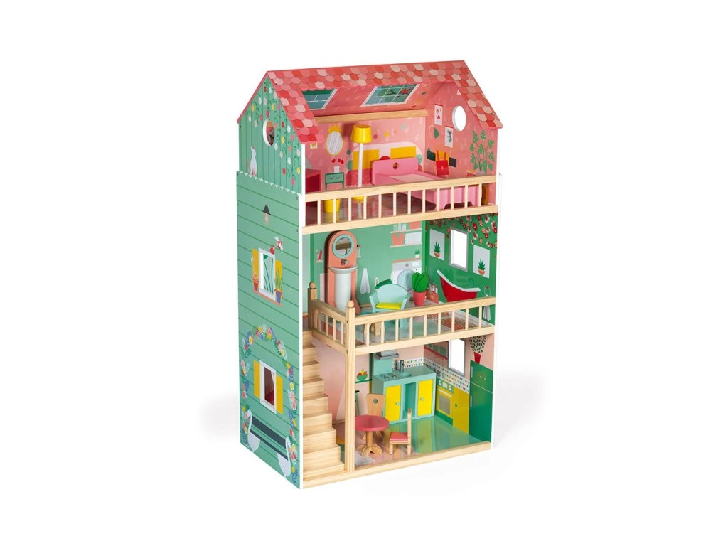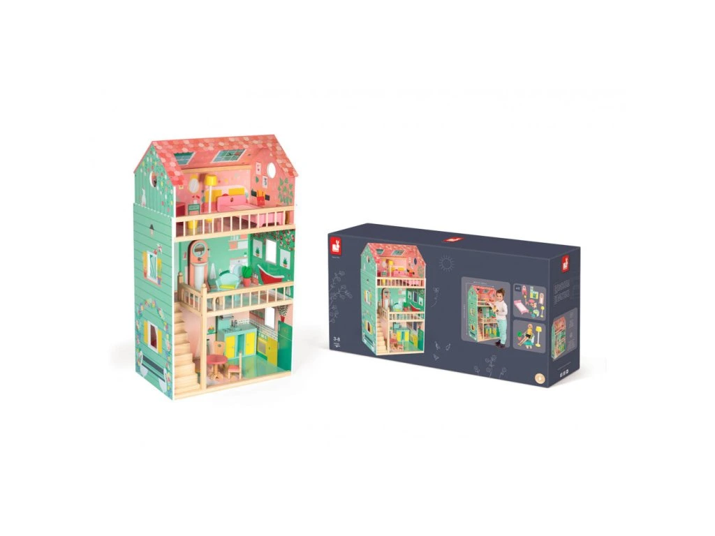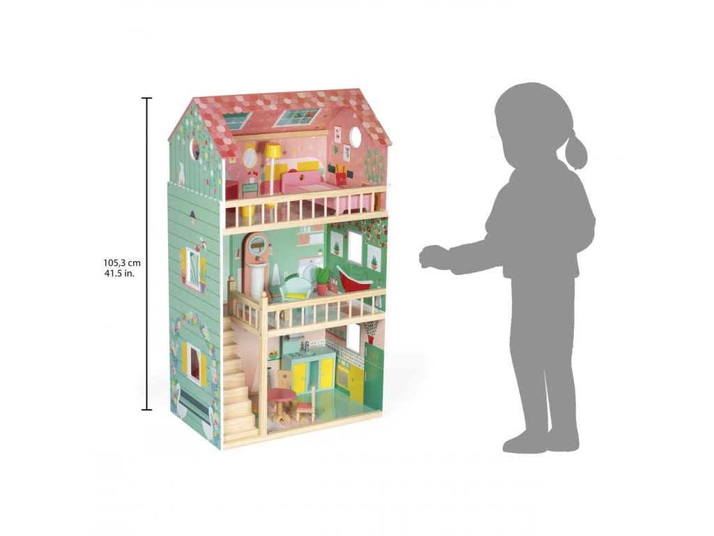 Janod Maxi domček pre bábiky 3-poschodový s nábytkom