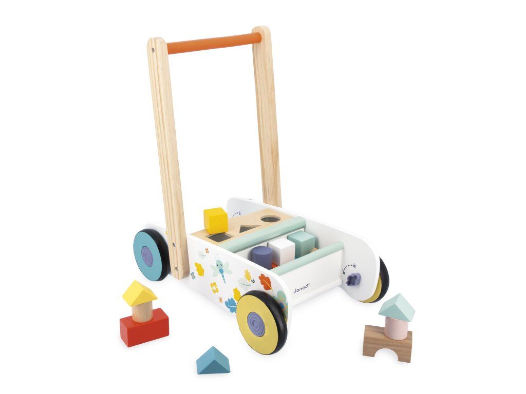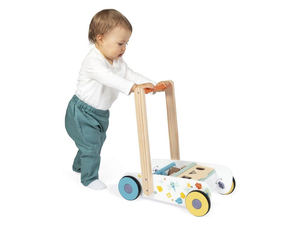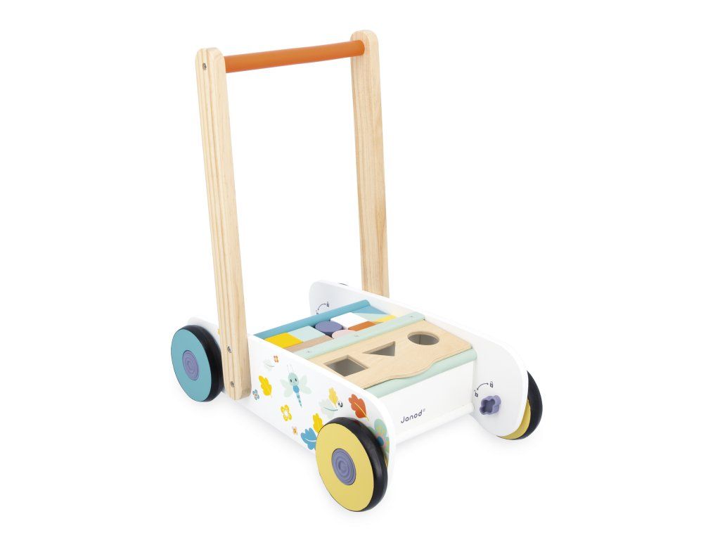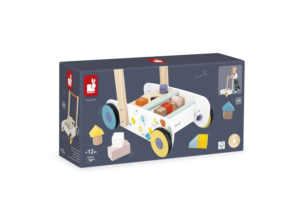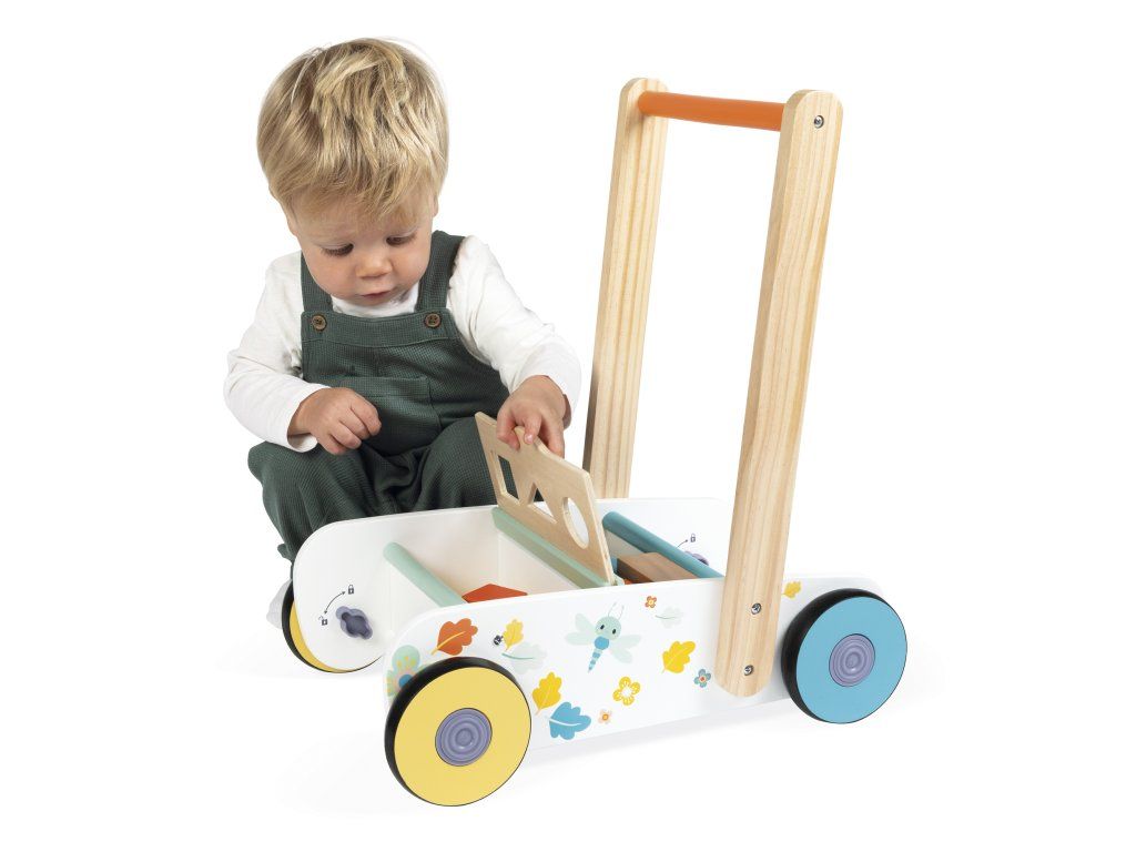 Ste pripravení na malú edukatívnu prechádzku po vidieku? Tento atraktívny tlačiaci vozík s jemnými farbami a dekoráciou s prírodnou tematikou je presne to, čo potrebujete pre svoje dieťa. Dieťa sa vďaka 18 kockám naučí tvary a farby a zabaví sa s tvarovacou krabičkou, ktorá je súčasťou malého zdvíhacieho veku. Rozvíja jemnú motoriku. Súčasťou je aj malá úložná krabička, aby ste si mohli vziať aj svoju plyšovú hračku! V neposlednom rade je vozík vybavený brzdovým systémom, ktorý sa dá ľahko nastaviť na kolieskach. To umožňuje krok za krokom rozvíjať hrubú motoriku. Drevená hračka FSCTM. Tlačiaci vozík pre deti od 12 mesiacov.