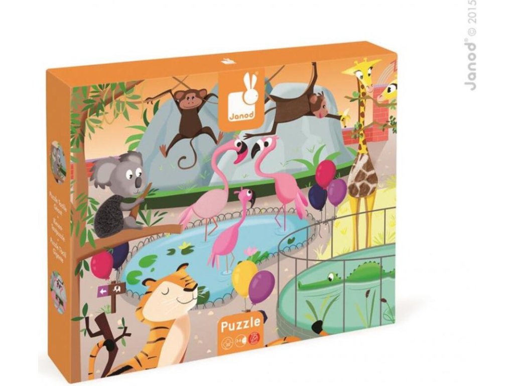 Janod Puzzle dotykové Deň v ZOO s textúrou 20 ks senzorické