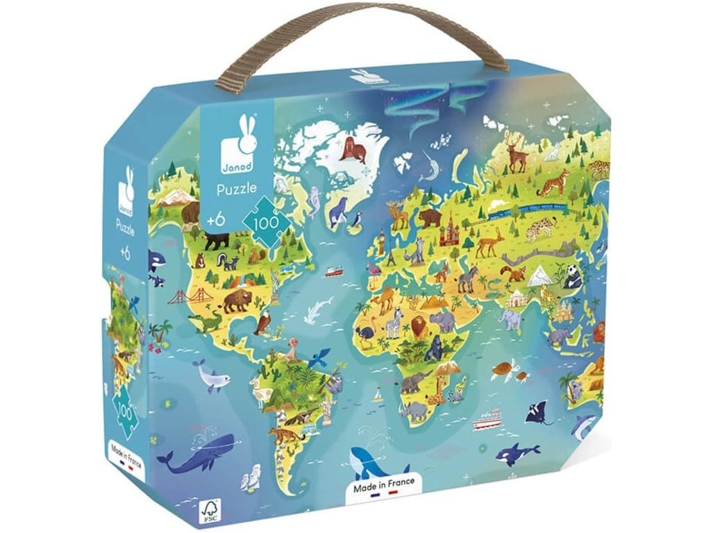 Janod Puzzle v kufríku Mapa sveta 100 ks