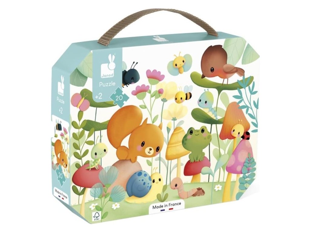 Janod Puzzle v kufríku Záhradné zvieratká 20 ks