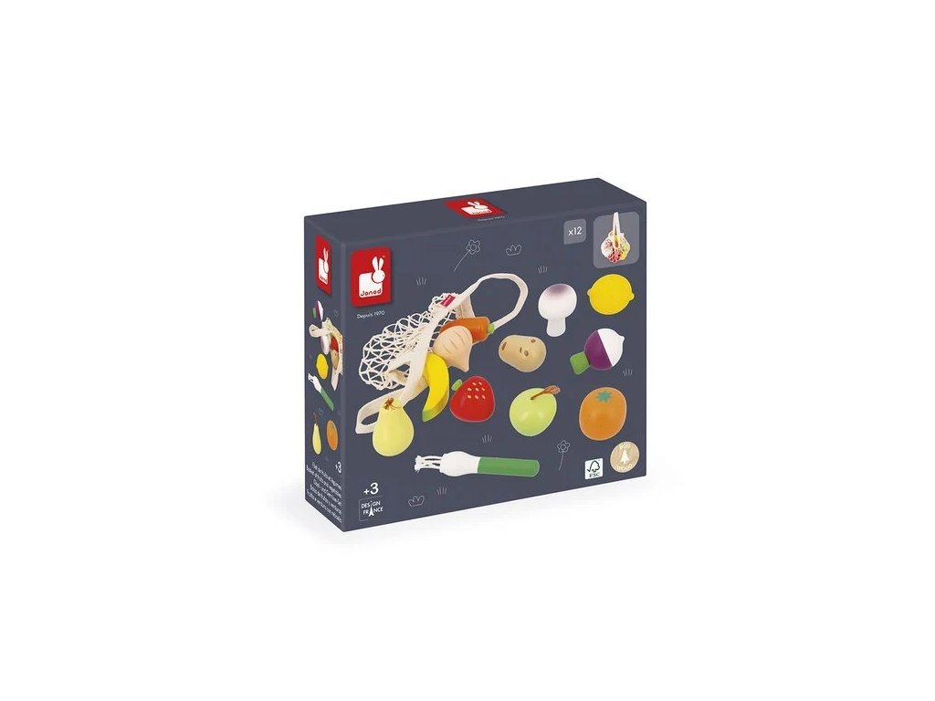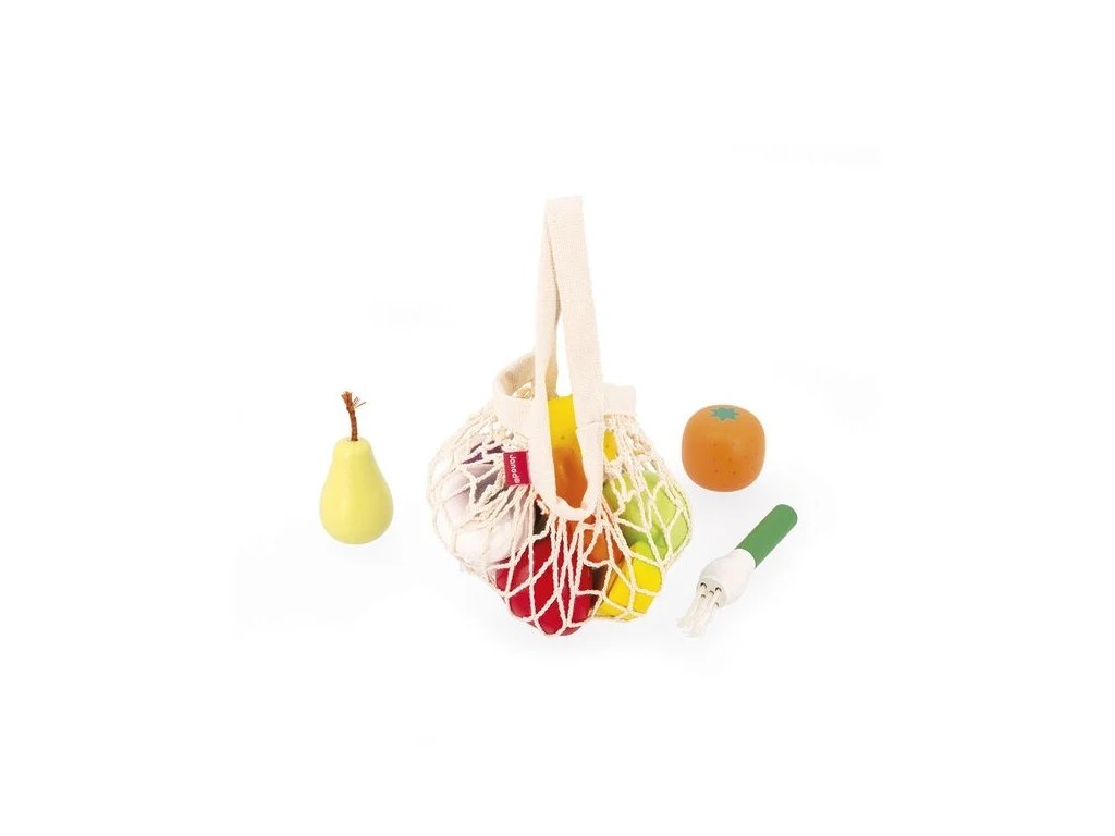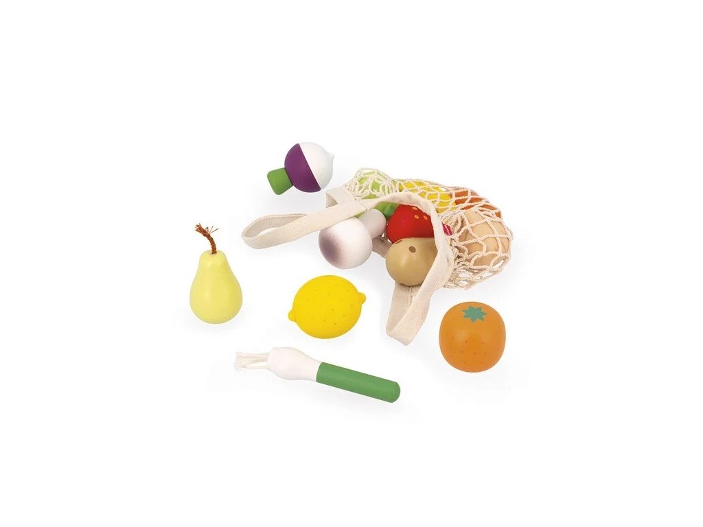 Janod Shiny Grandma Drevená zelenina a ovocie v sieťke 12 ks