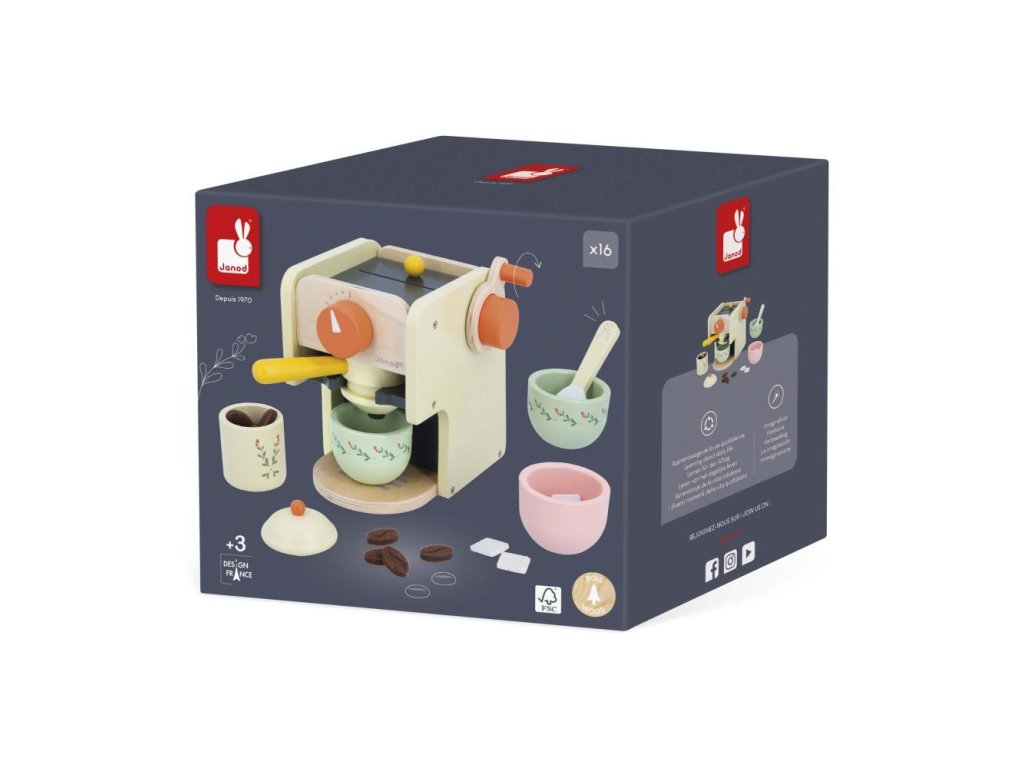 Janod Shiny Grandma Drevený kávovar s príslušenstvom 16 ks