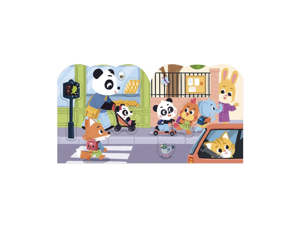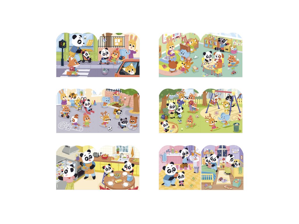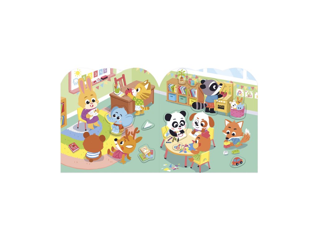 Čo si dnes robil/a? Tento tvarovaný zošit obsahuje 12 strán s ilustráciami s tematikou denného režimu (cestovanie do školy, prestávky na hranie atď.), ktoré je potrebné doplniť 8 stranami s priloženými nálepkami, čo je spolu 70 nálepiek. Otvory pre nálepky sú označené bledšou farbou, vďaka čomu sa ľahšie identifikujú. Každá nálepka má jednoduchý tvar bez orezávania, vďaka čomu sa ľahko uchopí. Ľahko sa lepia a odlepujú a nachádzajú sa na zošitých listoch v zošite. Táto aktivita pomáha rozvíjať trpezlivosť a jemnú motoriku. Je ideálna pre deti od 3 rokov.