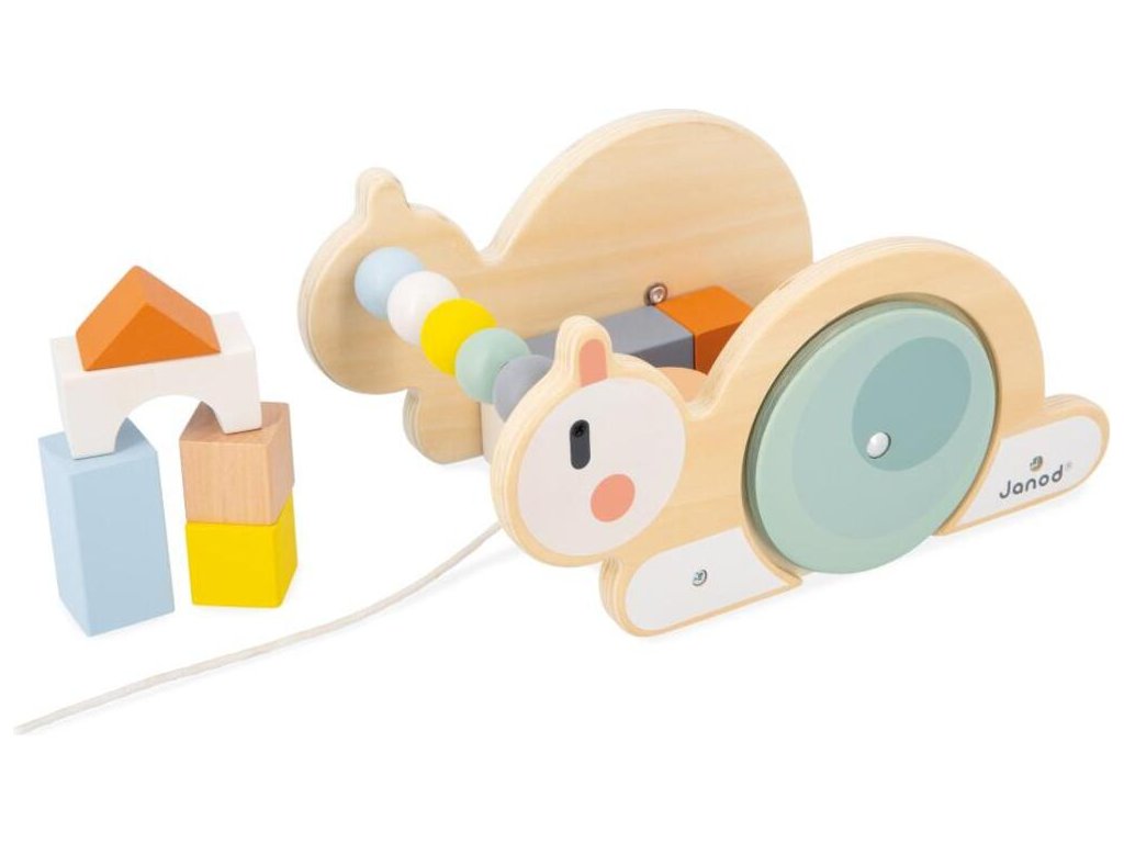 Janod Sweet Cocoon Drevený ťahací vozík s kockami Slimák