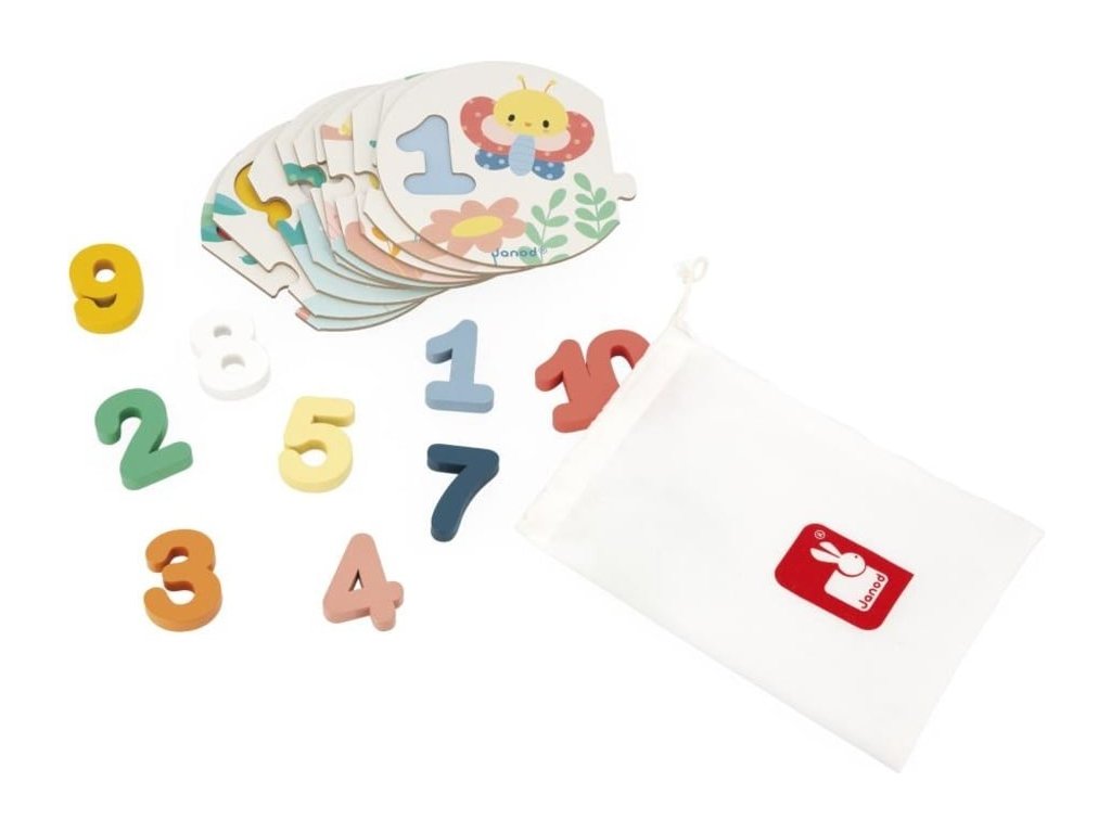 Janod Vkladacie drevené puzzle pre deti Čísla Pure