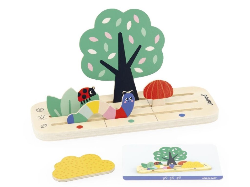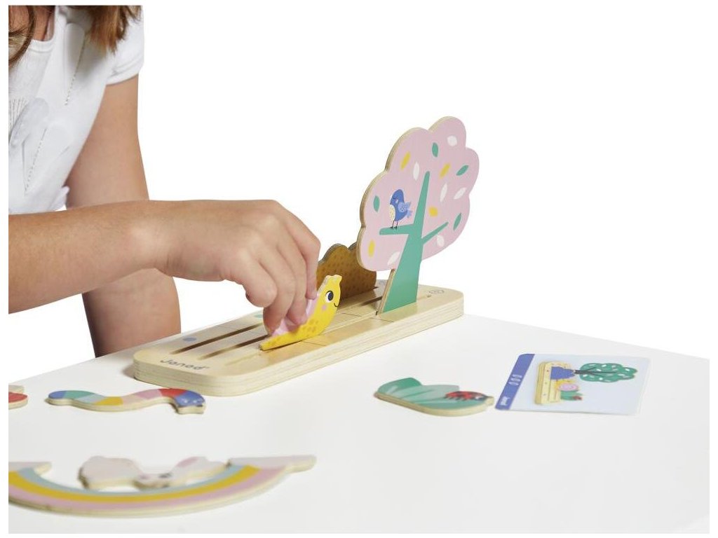 Edukatívna drevená hra je vyvinutá v spolupráci s pedagógom pre deti od 3 rokov, je vhodná aj pre deti v materskej škole. Čo vidíš v záhrade?