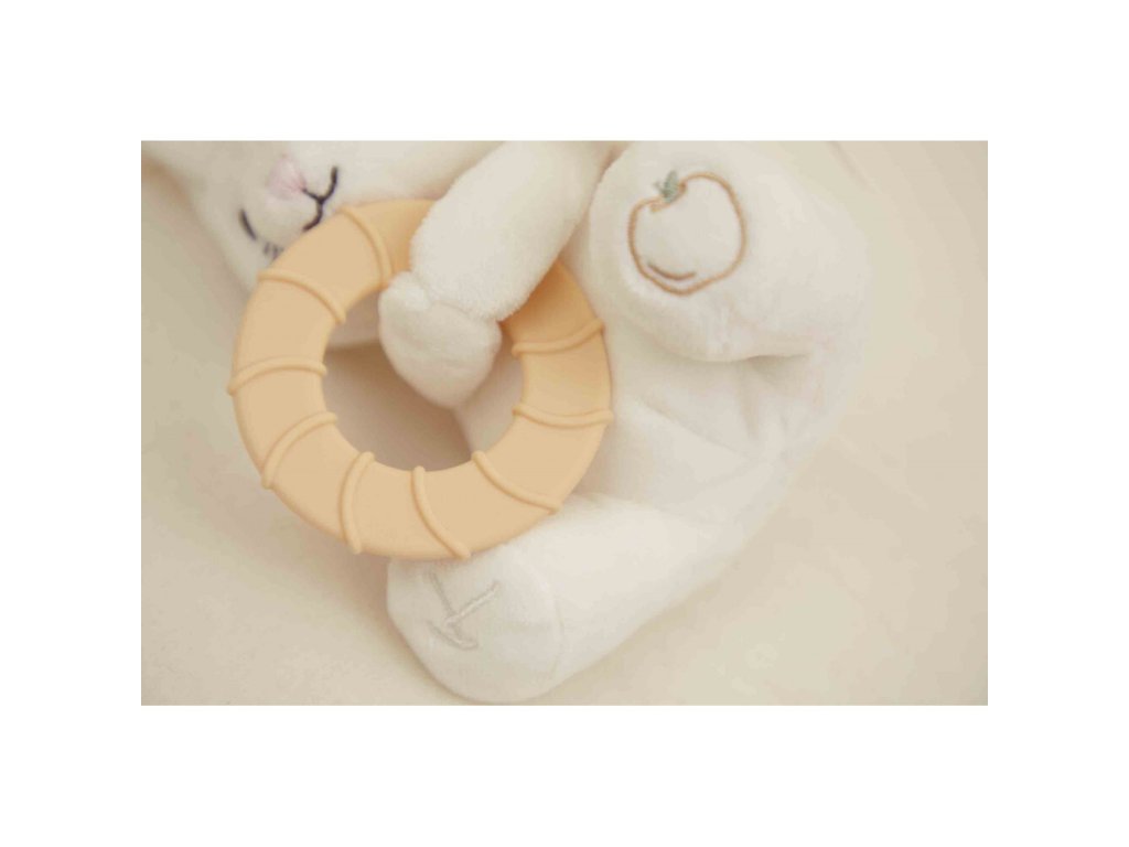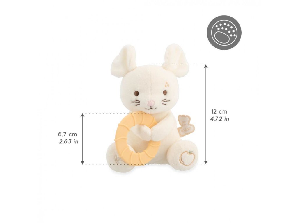 Vďaka hladkému drevenému krúžku bude môcť bábätko ľahko uchopiť túto 12 cm vysokú mäkkú hrkálku zajaca. Zvonček umiestnený v hlavičke prebudí zmysly bábätka, najmä sluch. Je...