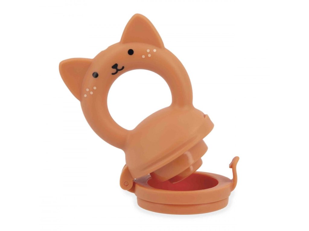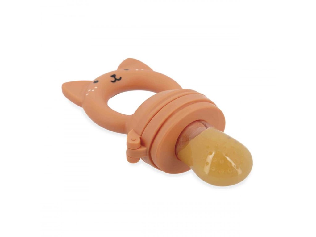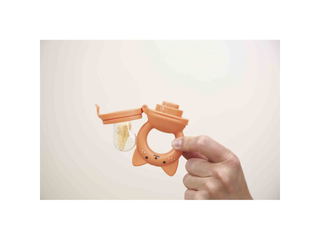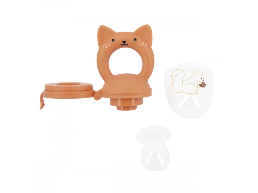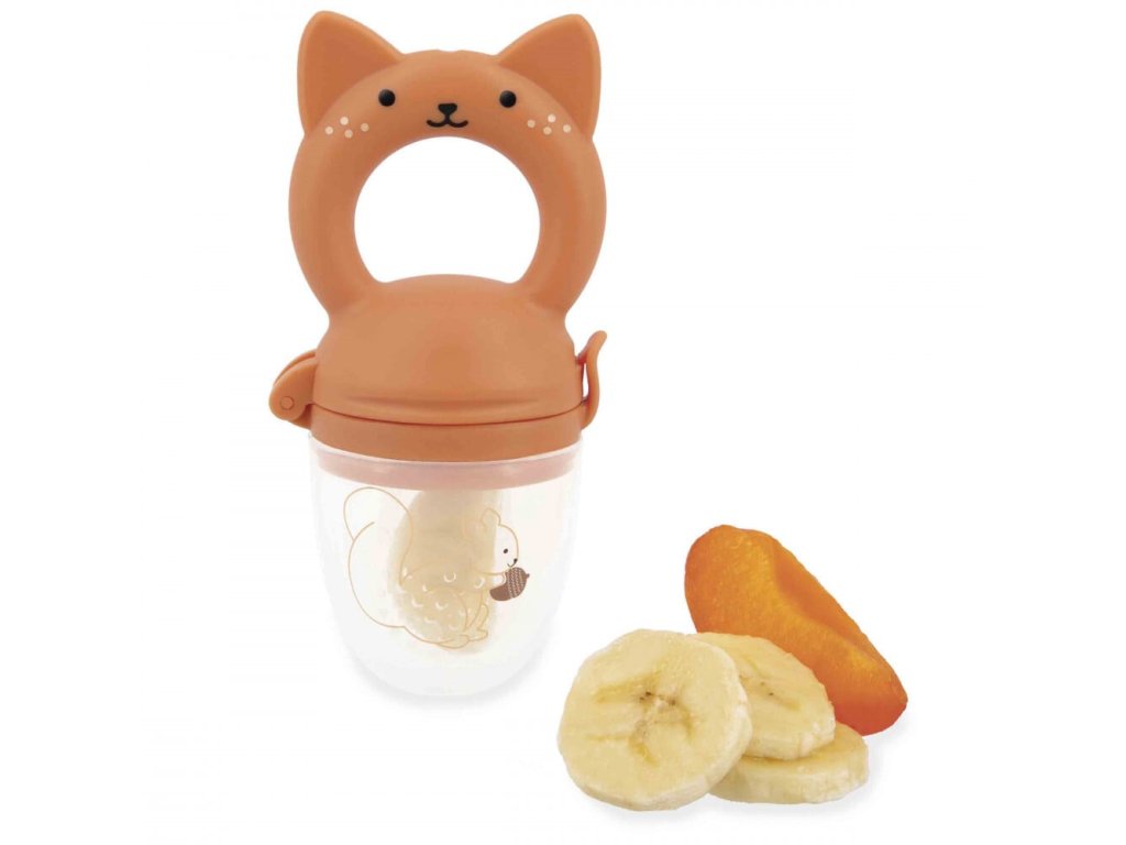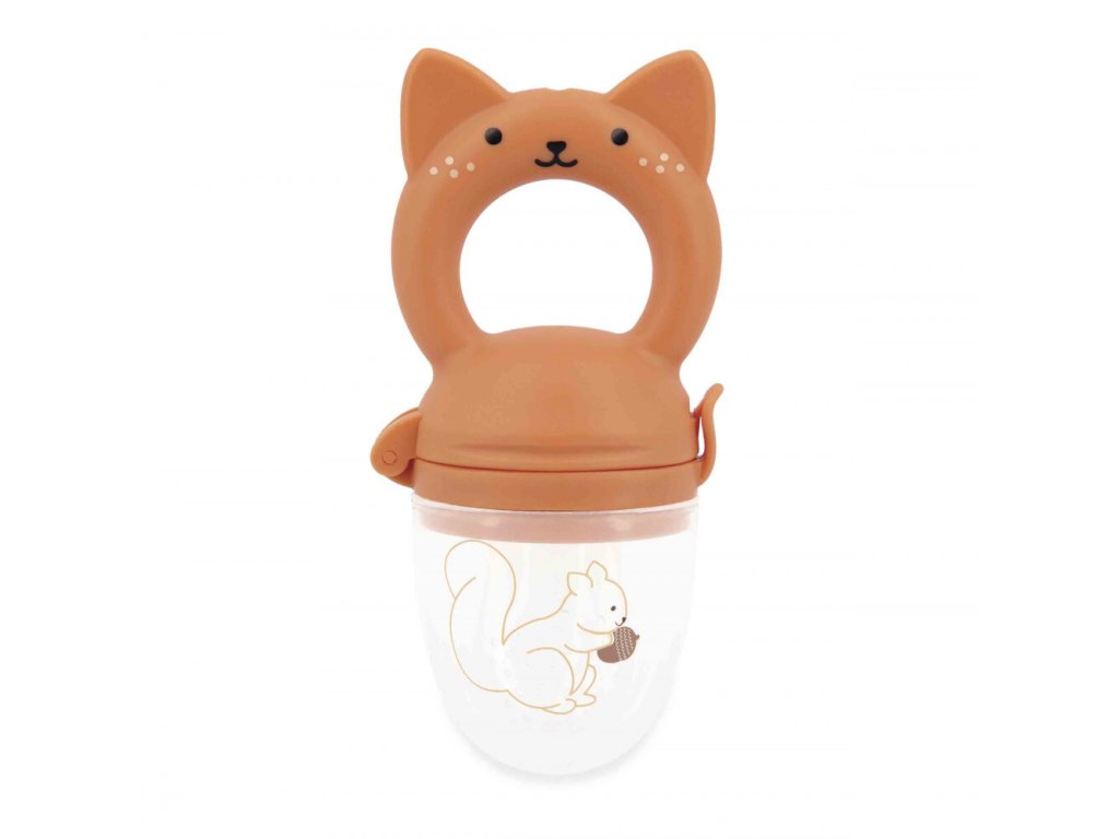 Sada je súčasťou kolekcie Grignoti, ktorá podporuje rozvoj chuti a žuvania a zároveň pomáha pri prerezávaní zúbkov. Použitie kŕmidla (feedera) je veľmi jednoduché: dovnútra stačí vložiť kúsky mäkkého ovocia alebo zeleniny a nechať dieťa samostatne objavovať ich chuť. Malé otvory v silikónovom nástavci uvoľňujú iba šťavu alebo jemné pyré, čím sa eliminuje riziko vdýchnutia veľkých kusov potravy. Ergonomická rukoväť v tvare veveričky je vyrobená zo silikónu a slúži aj ako hryzátko na masáž citlivých ďasien. Set dopĺňa savý froté podbradník s roztomilou výšivkou veveričky, ktorý udrží oblečenie bábätka v čistote počas týchto chutných okamihov.