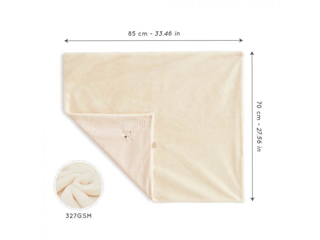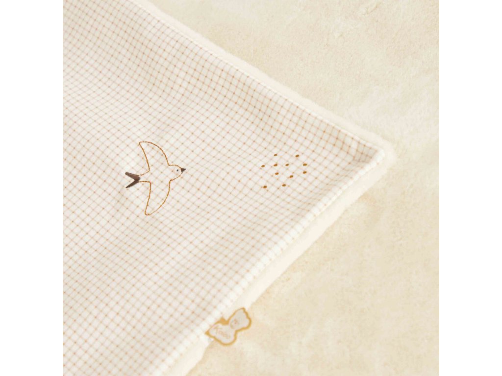Deka je vyrobená z kombinácie dvoch luxusných materiálov: jemného mikro-zamatu a nadýchanej umelej kožušiny, čo z nej robí ideálneho spoločníka pre spánok v postieľke, odpočinok doma alebo prechádzky v kočíku. Dizajn deky je nadčasový a elegantný - zdobí ju jemný kockovaný vzor (gingham) s detailnou výšivkou lastovičky. Vďaka krásnemu darčekovému baleniu je táto deka tiež skvelým tipom na darček k narodeniu bábätka. Kladieme dôraz aj na ekológiu, preto je tento produkt vyrobený z 99 % z recyklovaných materiálov.