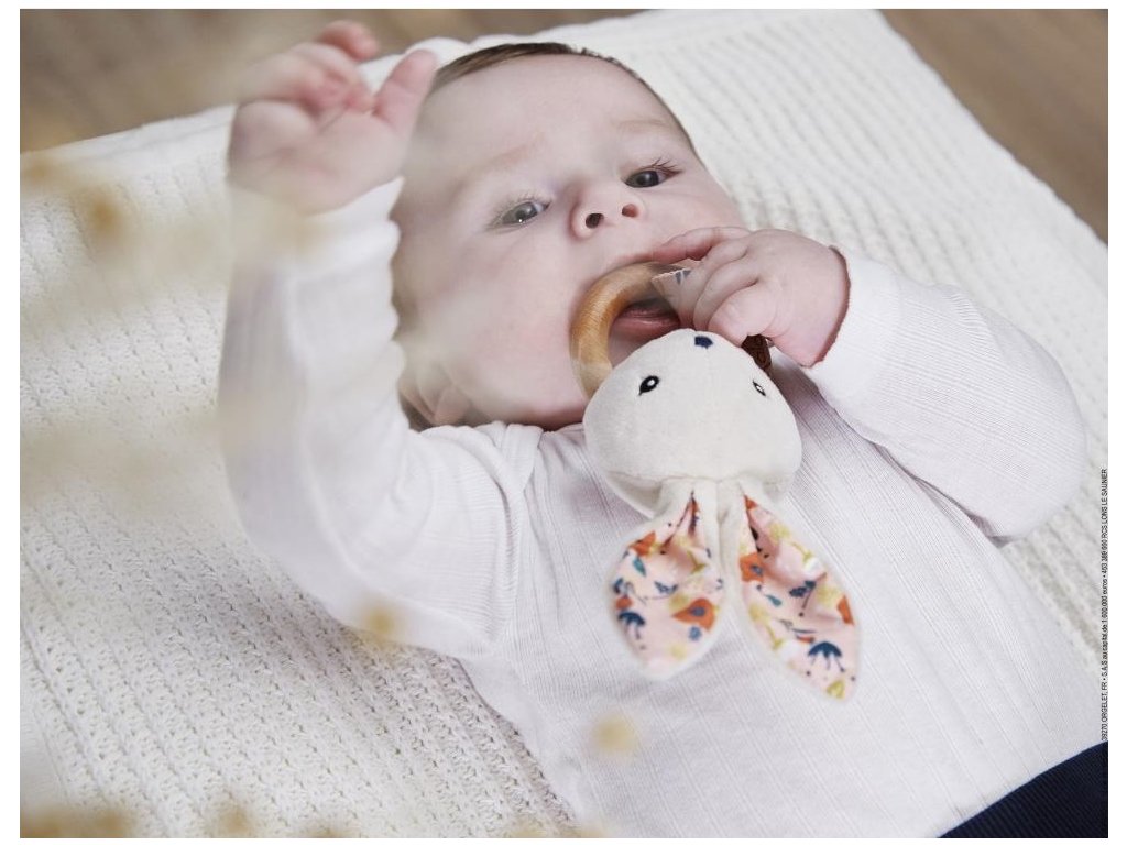 Kaloo KDoux Drevená hrkálka pre bábätká Zajačik Poppy