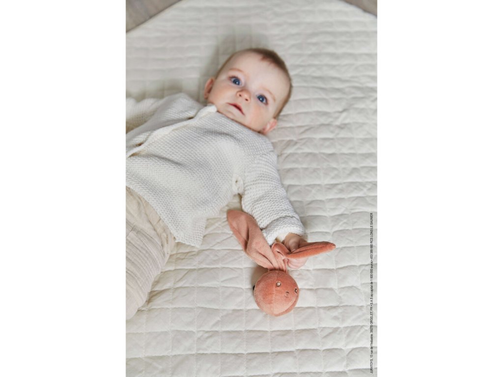 Kaloo Lapinoo Jemná hrkálka v tvare loptičky s uväzovacími ušami terracotta