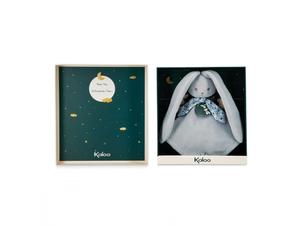 Kaloo Lapinoo Plyšový mojkáčik pre bábätko Zajačik s dlhými ušami modrý 30 cm