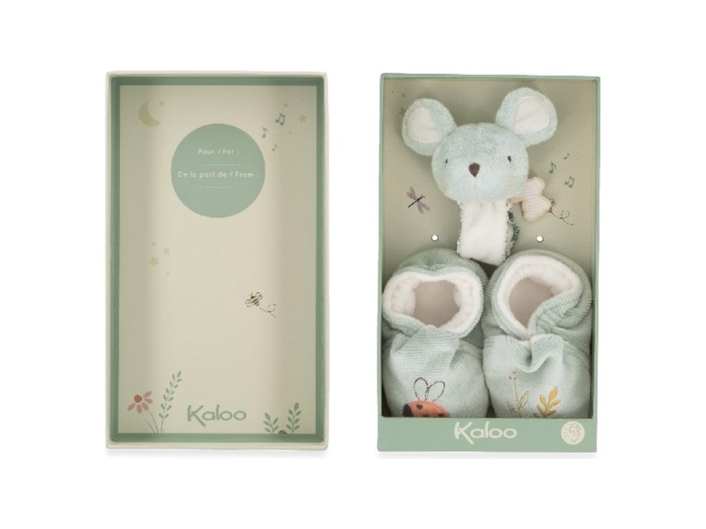 Kaloo Petit Chansons Darčeková sada pre bábätko Náramok a capačky s rolničkou Myška