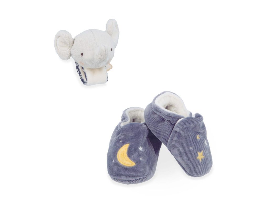 Kaloo Petit Chansons Darčeková sada pre bábätko Náramok a capačky s rolničkou Slon
