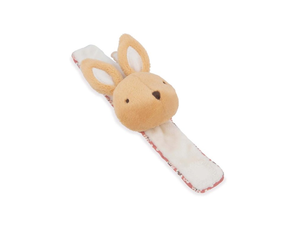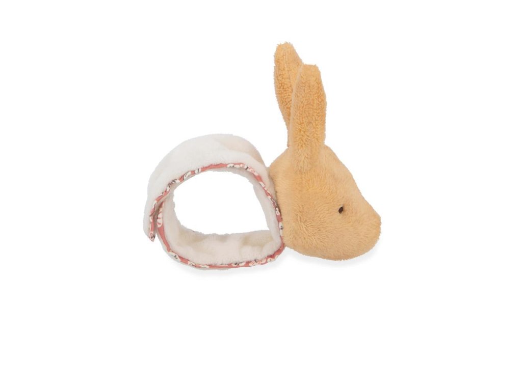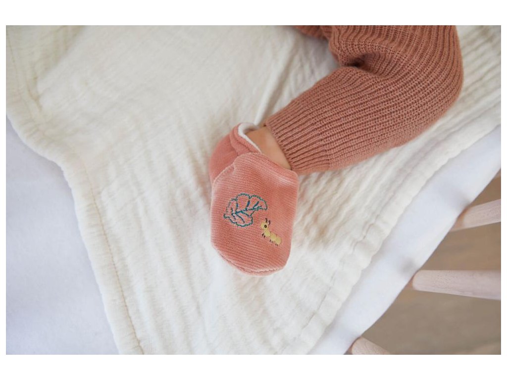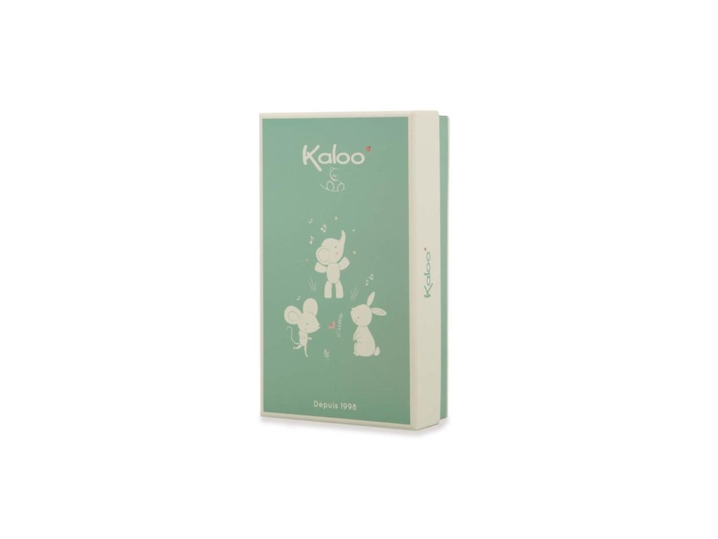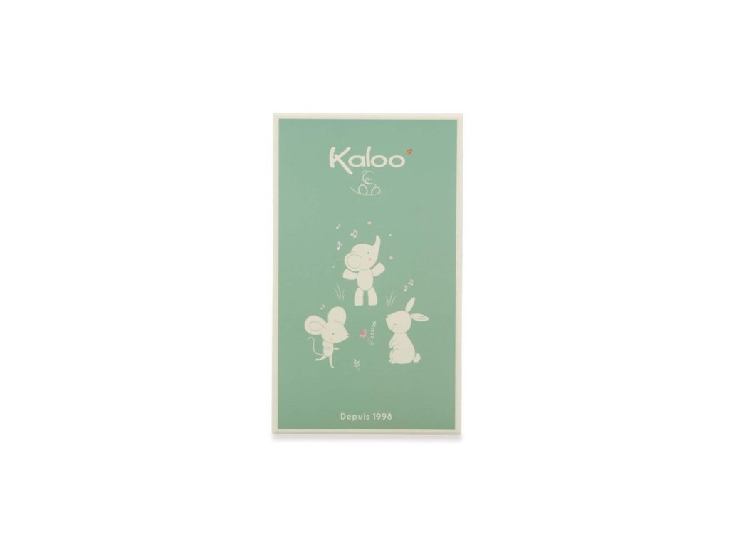 Táto sada papučiek a náramku so zajačikom je súčasťou série Petites Chansons od Kaloo: rad venovaný prebúdzaniu sa na zvuky, vyvinutý v spolupráci s tímom psychomotorických terapeutov a zložený z rôznych zvukov na stimuláciu dieťaťa.