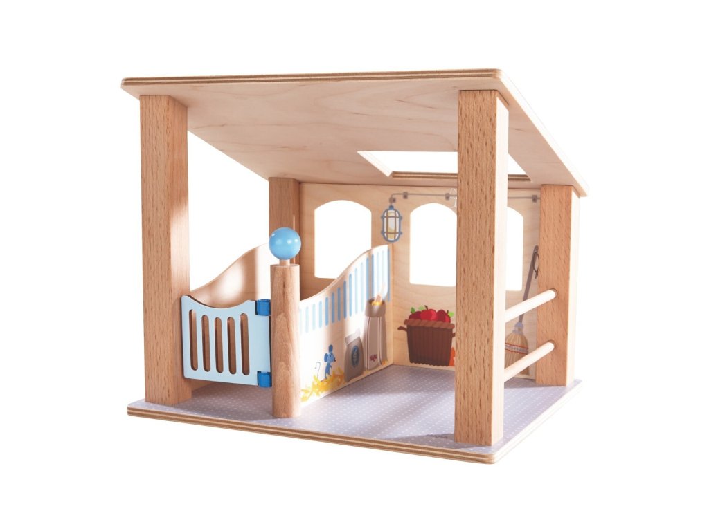 Originálna stajňa pre hračkárskych koníkov - jedinečný doplnok vašej zbierky Little Friends. Domček možno otvárať zhora aj spredu a ubytujú sa v ňom pohodlne až traja pejkovia...
