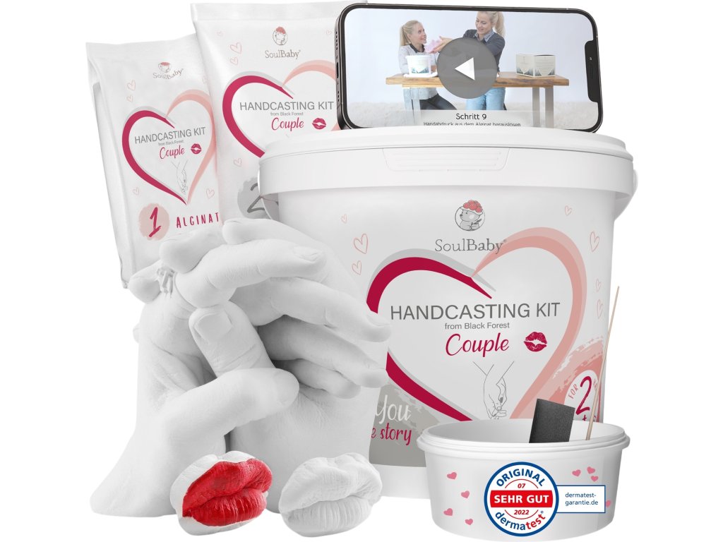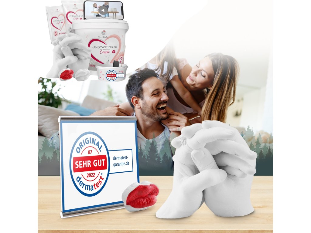 Dermatologicky testované materiály z Nemecka robia súpravu 3D odliatkov rúk pre páry úplne šetrnou k pokožke. Ideálne ako darček k výročiu svadby.