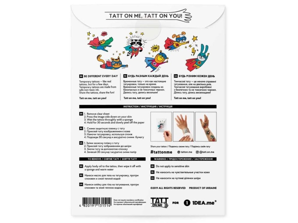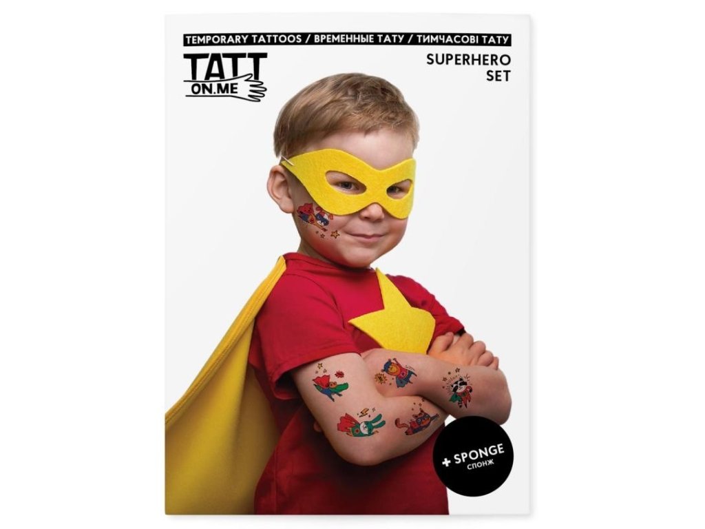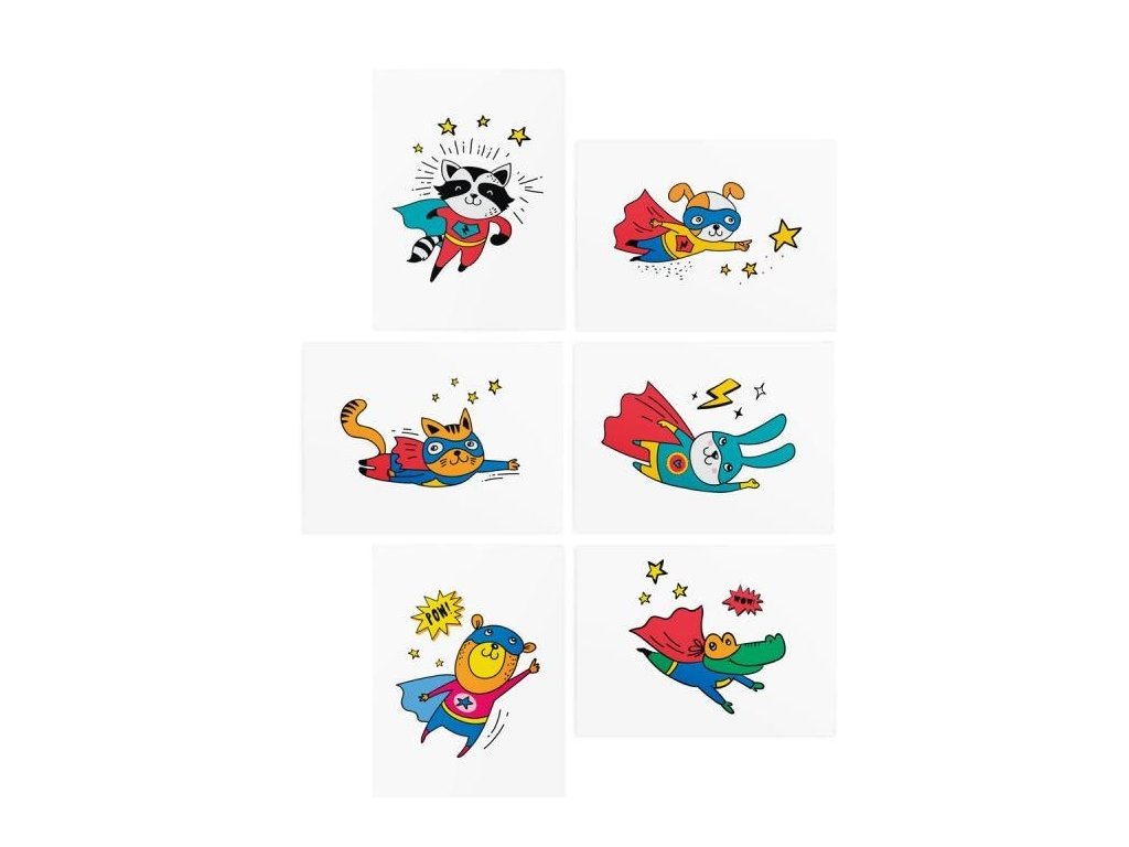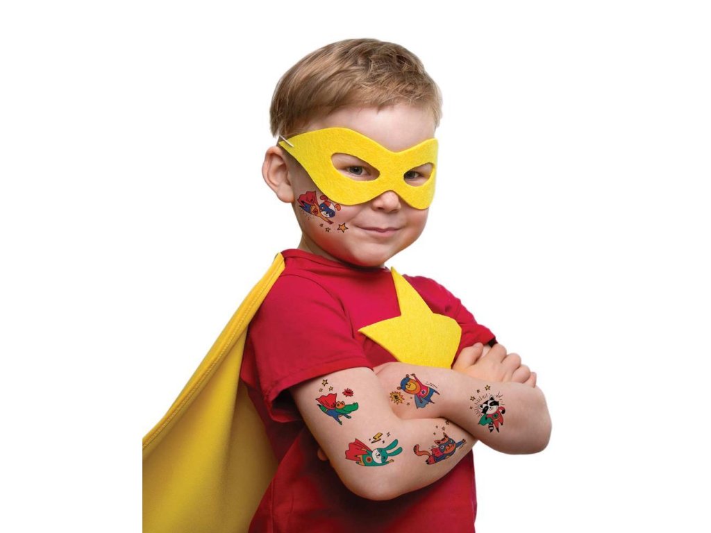Sada dočasných tetovaní superhrdinov je určená pre chlapcov aj dievčatá, ktorí majú superschopnosťou hrať a baviť sa!