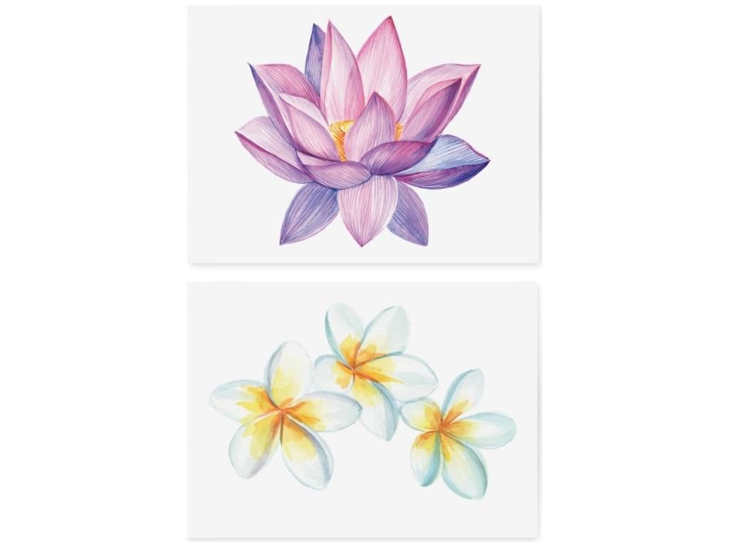 Dočasné tetovania kvetov z Bali sú navrhnuté tak, aby ladili s vašimi plavkami a slnečnými okuliarmi na opačnej strane oceánu.