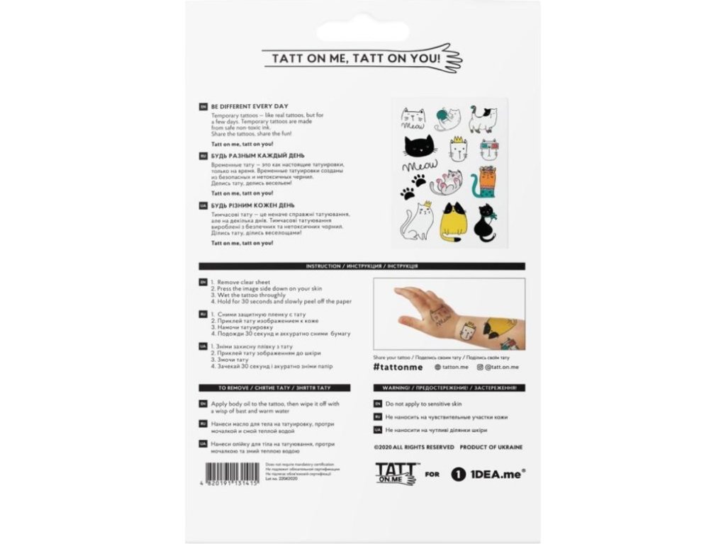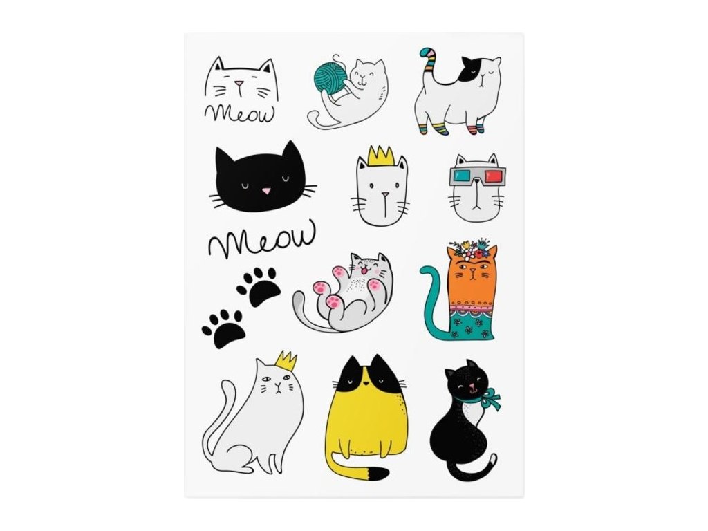 TATTonMe Vodeodolné dočasné tetovačky Mačky mix
