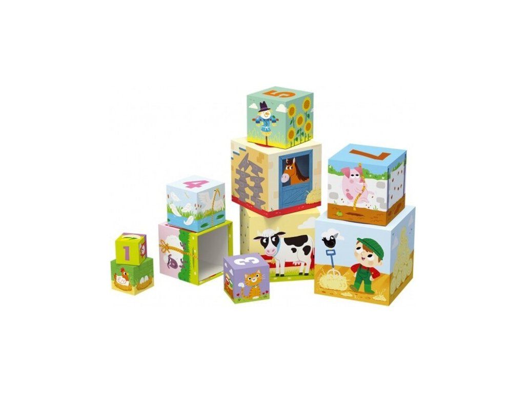 Trefl Baby kocky pyramída Na farme, výrobca Trefl. Sada 10 farebných kociek o rôznych veľkostiach, ktoré môžu byť položené ako veľká veža, alebo ľubovoľným spôsobom.