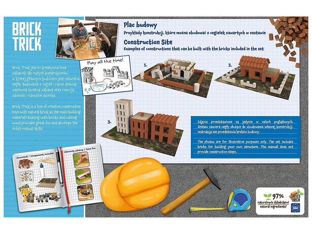 Skladajte tehlu za tehlou, režte a lepte dosky, postupujte od základov až po dokončenú budovu a nakoniec svoj výtvor ozdobte priloženými dekoráciami.Stavajte krok za krokom podľa návodu alebo nájdite a zrealizujte svoje vlastné riešenie. Oživte svoju dokončenú stavbu papierovými figúrkami.Pokiaľ spojíte niekoľko sád TREFL Brick Trick, môžete vytvoriť malebnú dedinku, moderné mesto alebo stredovekú osadu.Stavebnicu je možné používať opakovane (lepidlo je rozpustiteľné vodou).Stavebnice Brick Trick od výrobcu TREFL zlepšujú manuálne zručnosti, rozvíjajú predstavivosť a podporujú sústredenie.Balenie obsahuje:
