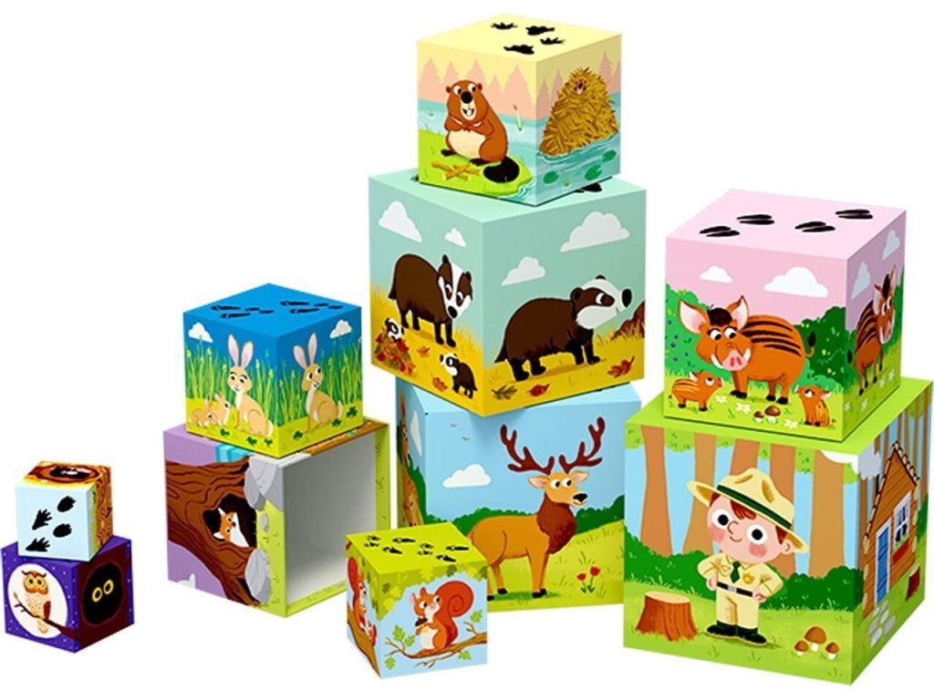 Kocky majú najrôznejšie potlače s motívom zvieratiek z lesa, sú rôzne veľké a farebné. Deti nemusia stavať len komíny, môžu si postaviť ohrady pre zvieratká, alebo napríklad najrôznejšie mosty...