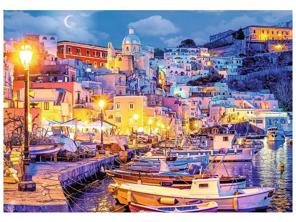 Trefl Puzzle 1000 - Ostrov Procida v noci, Taliansko