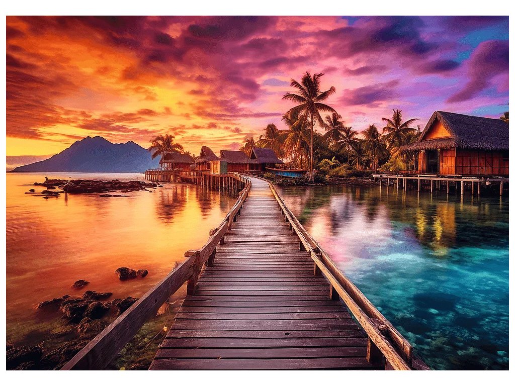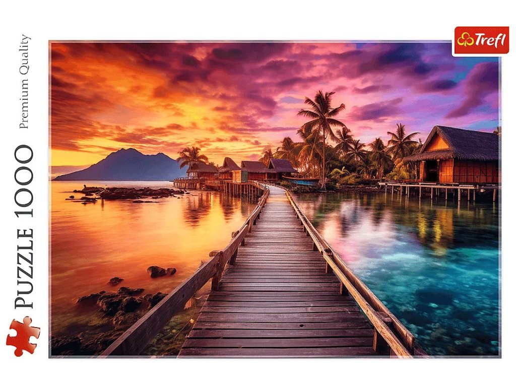 Puzzle Paradise Island pozostávajúce z 1000 dielikov zobrazuje exotický západ slnka. Po ich usporiadaní vznikne obrázok s rozmermi 683x480 mm.
