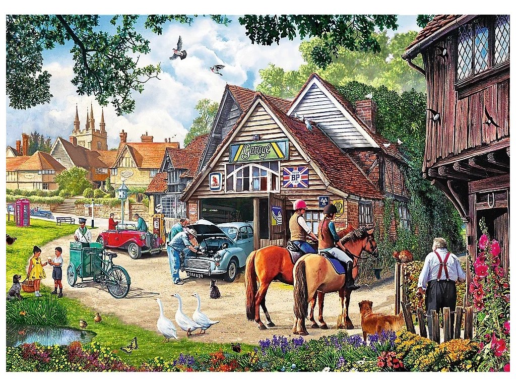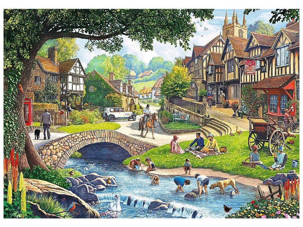 Idylický život je puzzle zobrazujúci výjavy zo života malého, pokojného mestečka.
