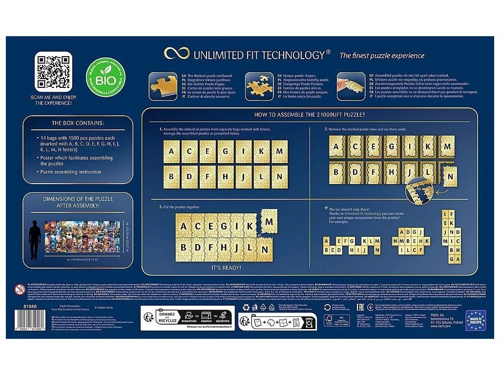 Objavte puzzle Trefl Prime UFT - Earth Chronicles: od stvorenia po budúcnosť , ktoré pozostáva z impozantných 21 000 dielikov ! Poskladajte obrovskú skladačku predstavujúcu umeleckú víziu: od počiatkov Zeme až po budúcnosť!