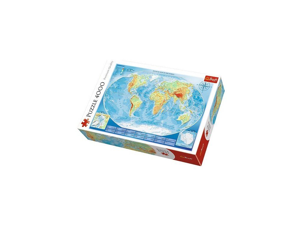 Trefl Puzzle Veľká mapa sveta 4000, výrobca Trefl.   4000 dielikov Rozmer v zloženom stave 1360x960 mm Katalógové číslo 45007 Pre deti od 14 rokov