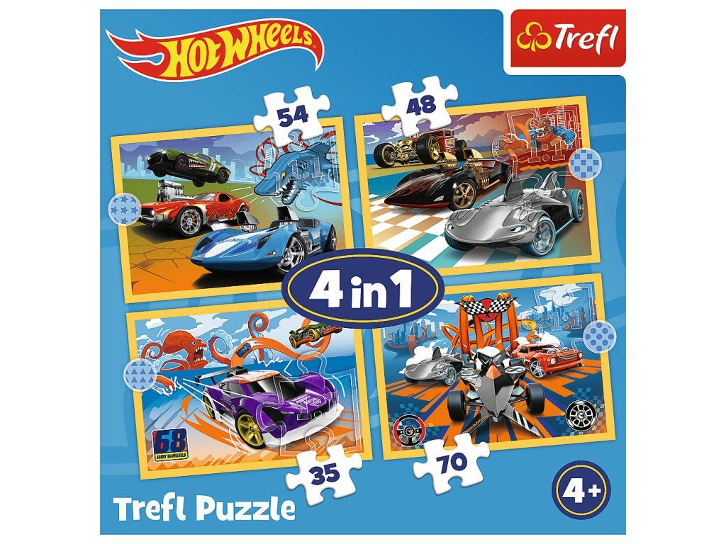 Trefl Puzzle 4v1 - Vozidlá Hot Wheels / Mattel Hot Wheels
